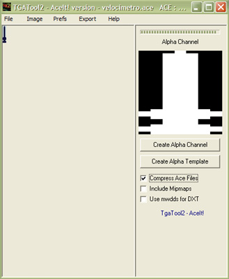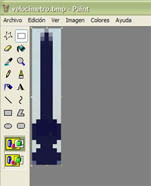 La imagen de la aguja, realizada en éste caso mediante Ms Paint, precisa igualmente de un canal alpha para que se muestren los números debajo. Es el momento de emplear TgaTool2 para exportar la imagen al formato *.ace, en la carpeta/directorio de la cabina correspondiente a nuestra locomotora :
