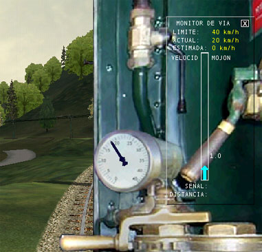 Abrir MSTS y arrancar la ruta y la locomotora (en modo EXPLORE ROUTE). Observar dónde están los elementos situados en la pantalla: