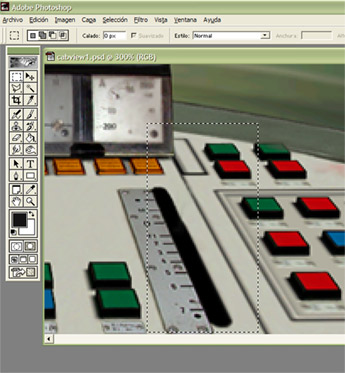 Seleccionamos el sector que ocupará el mando (en todas sus posiciones) en funcionamiento. Una vez en la cabina, todo éste espacio será una zona activa que servirá para seleccionarlo y actuar sobre él con el mouse. Hay que asegurarse de no seleccionar el área demasiado justa, si es muy grande luego lo podremos arreglar, pero si nos hemos pasado habrá que empezar de nuevo.