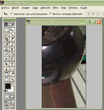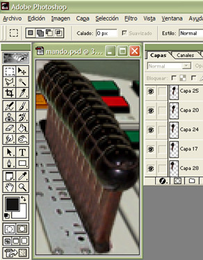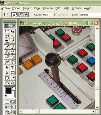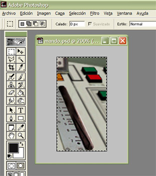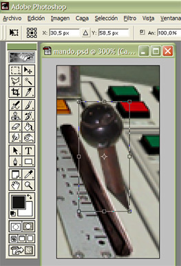 2. Recortamos la imagen (Imagen>Recortar) y la guardamos aparte con otro nombre, en formato *.psd para poder usar después capas en la imagen. Abrimos la fotografía escogida para extraer de élla la palanca: