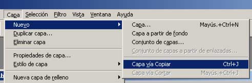 Hacemos una copia de la Capa con el comando Capa > Nuevo > Capa vía Copiar: