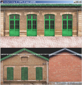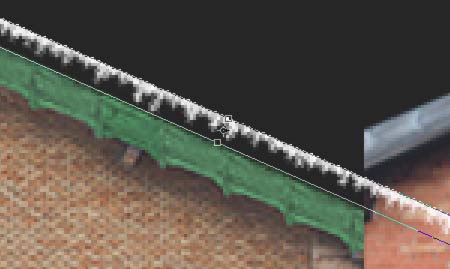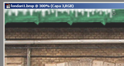 Cuando acabamos con ésto, y gracias a tenerlo en una capa separada, podemos hacer copias y colocarlo en otras partes de ésta ó de otras texturas. Por ejemplo, podemos usar una copia para los laterales del tejado, que también deben tener carámbanos, y será más sencillo copiarlo que hacerlo de nuevo.
