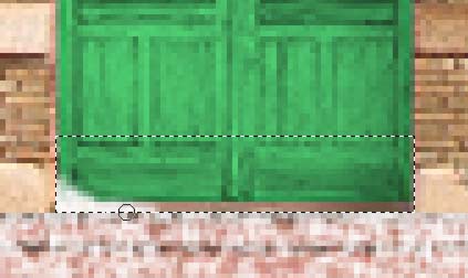 Creamos una capa nueva y seleccionamos en élla la parte inferior de la puerta. Con la Herramienta Aerógrafo, con un tamaño de pincel pequeño y una presión del 50%, pintamos la parte inferior de la puerta de blanco: